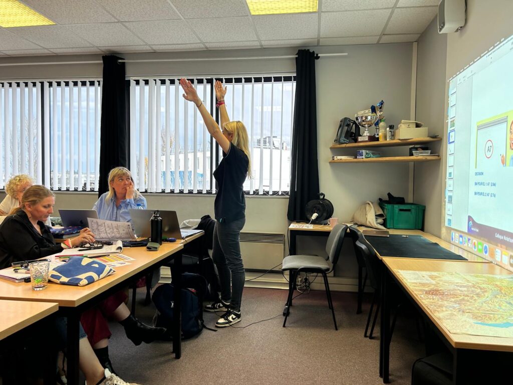 Jade Cadiere, responsable technique NA de la ligue AuRA, présente les évolutions du règlement dans une ambiance studieuse lors du